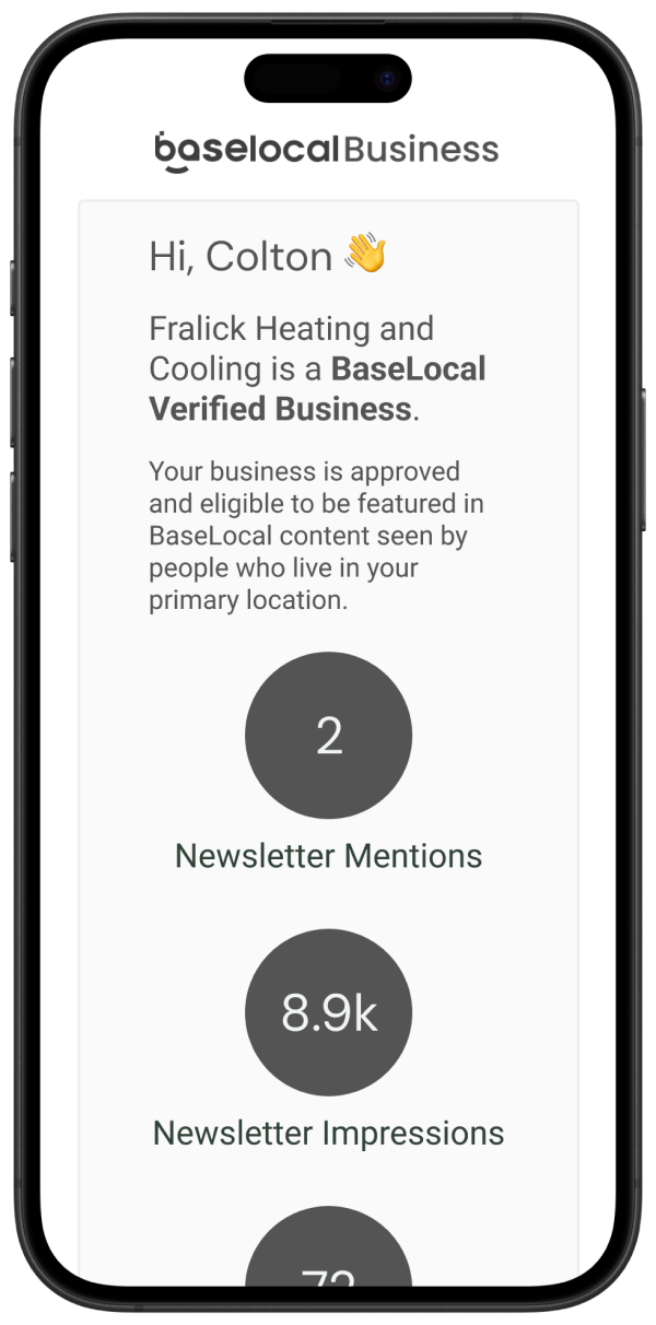 Get spotlighted in your city's BaseLocal newsletter, seen by thousands of local readers.